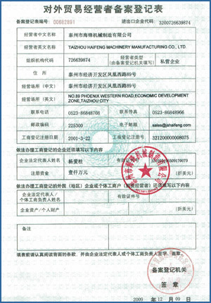 | 質(zhì)量管理體系認(rèn)證 | 對外貿(mào)易登記表 | 專利證書 |